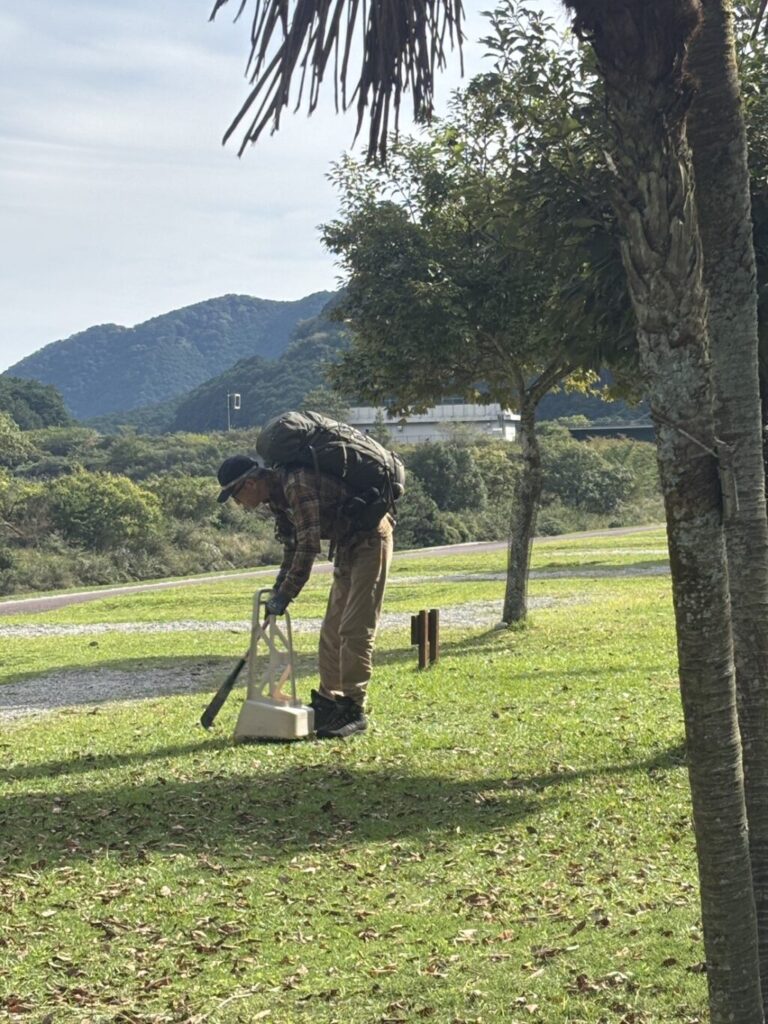 宿直明けの今日。シカフン拾い、場内ゴミ拾いにリュックを背負い作業しました(笑)。