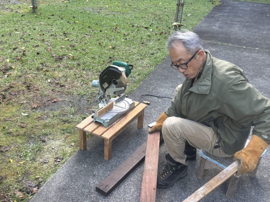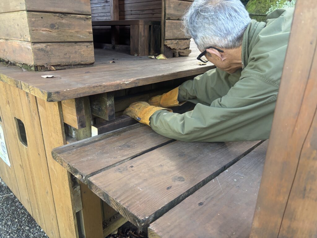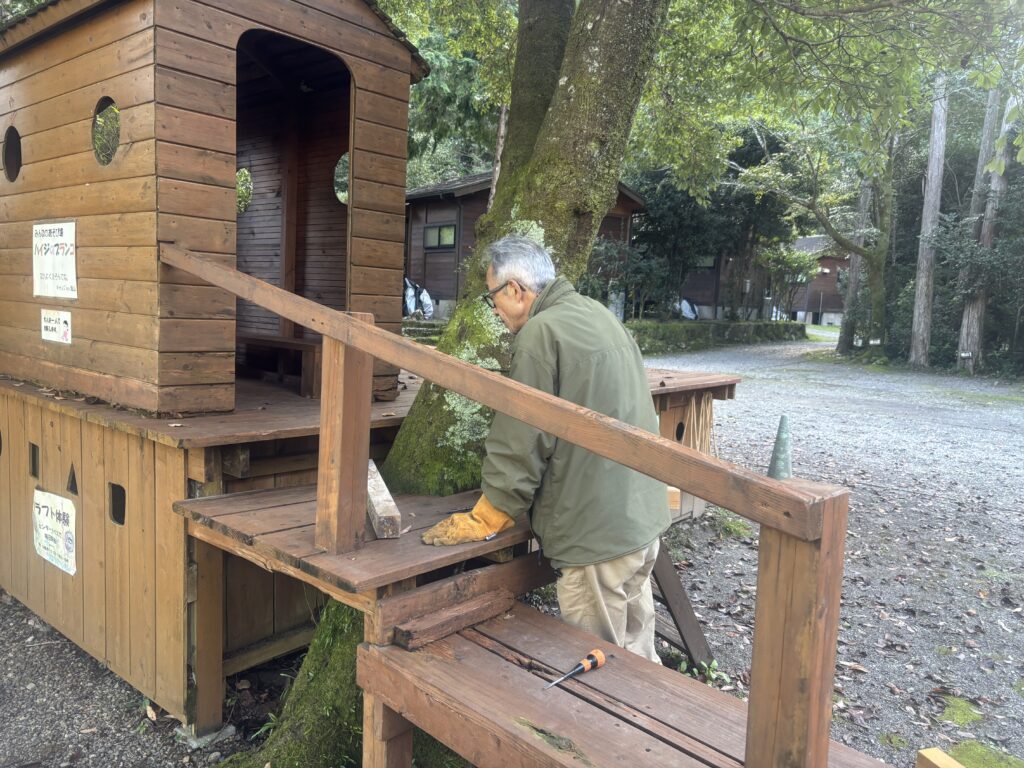 理事長さんとハイジの山小屋の補修作業を行いました。