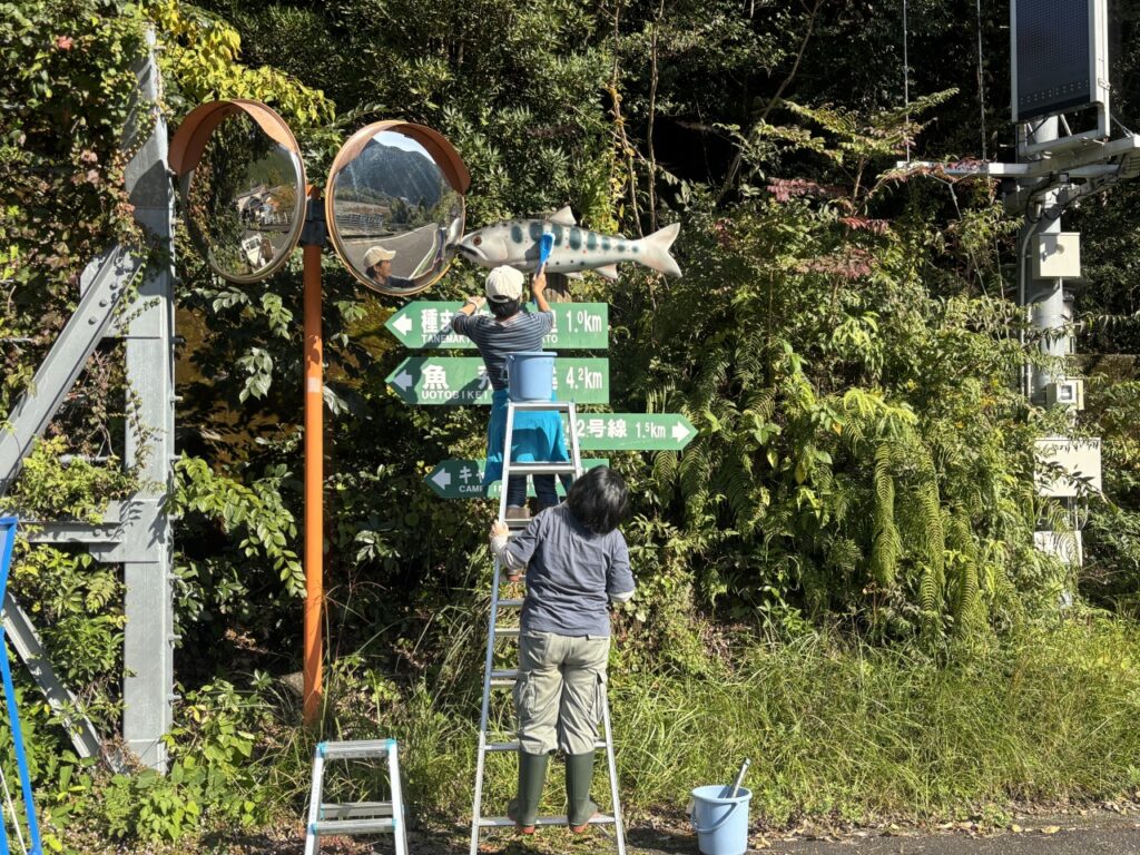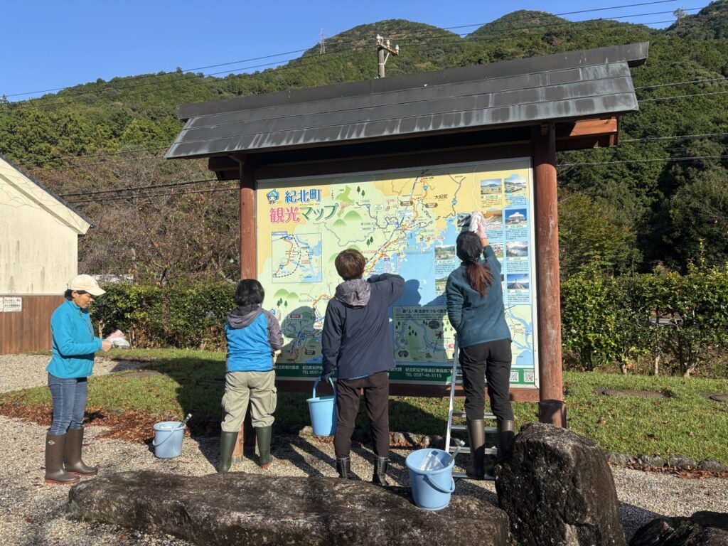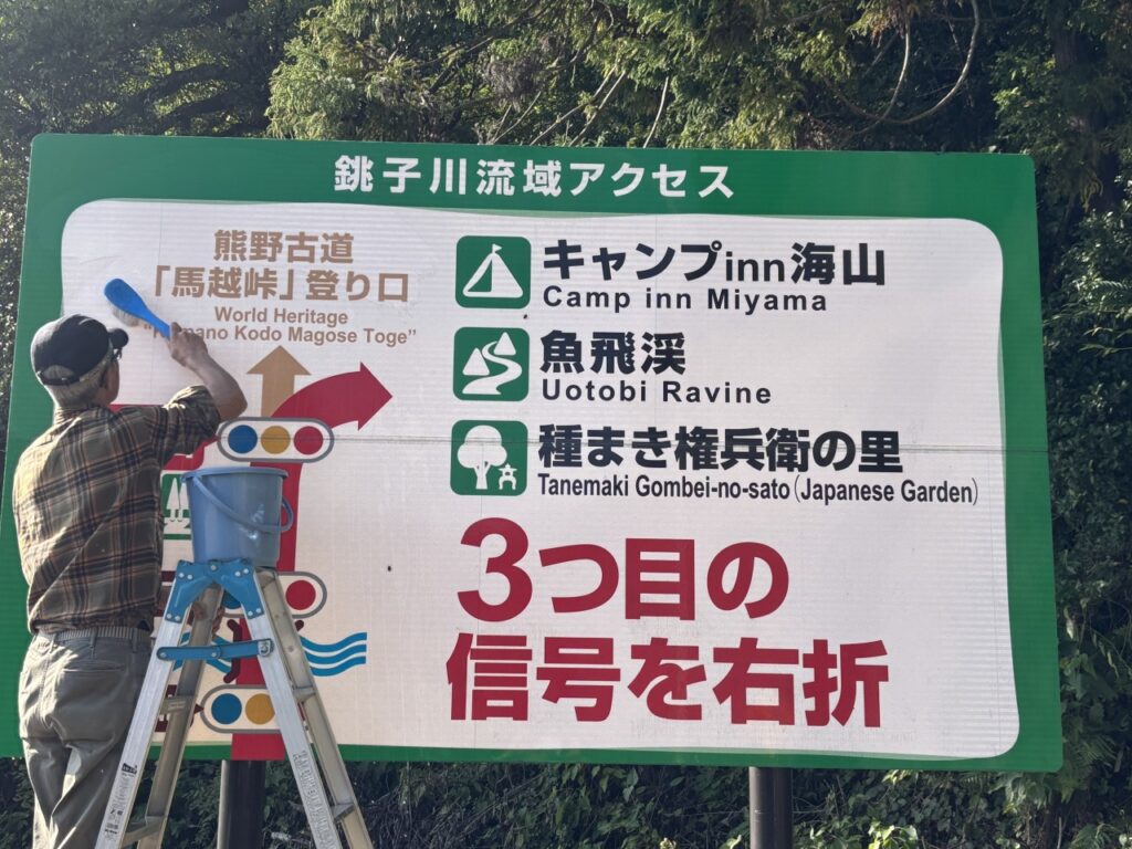 本日は、ふるさと企画舎と銚子川環境保全会さんとで銚子川流域の看板・標識の清掃をおこないました。