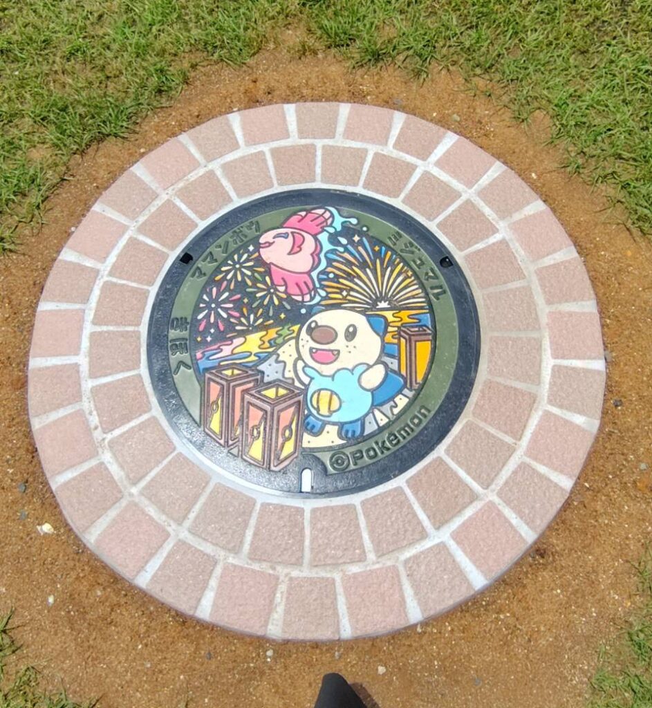 ポケモンが描かれたマンホール蓋のことで、三重県内29市町すべてに、みえ応援ポケモンの【ミジュマル】と、県内のさまざまな景観をイメージして描かれた『ポケふた』が設置されているよ!