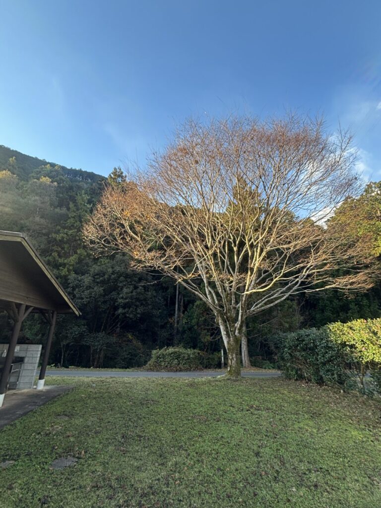 場内を見ればケヤキの葉っぱも落ちて、冬のキャンプ場らしい景色になってきました。