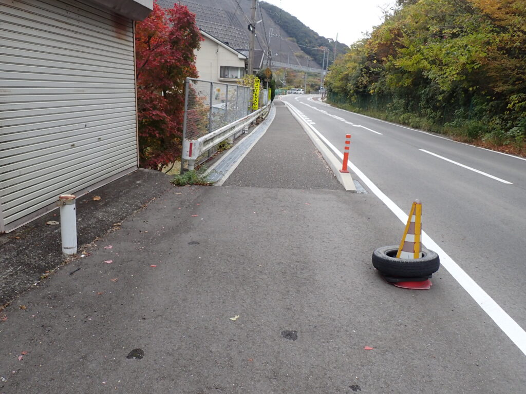 高速の工事中とはこんな場所でダンプがバンバン通り、道狭く生きた心地しなく注意して歩いていたな。