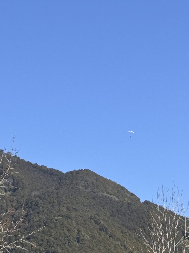 桜を眺めながら上を見るとパラグライダーが気持ちよさそうに飛んでましたよ。