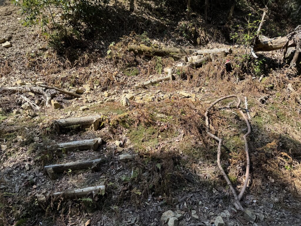 ボクの当てにならない推測がまた始まった。本来はこちらが下り口なんだろと。山がズレた事により真っ直ぐ林道に下りる道となったのだろうと。そこまでは普通に考えるところだけど、ボクは違う(笑)。